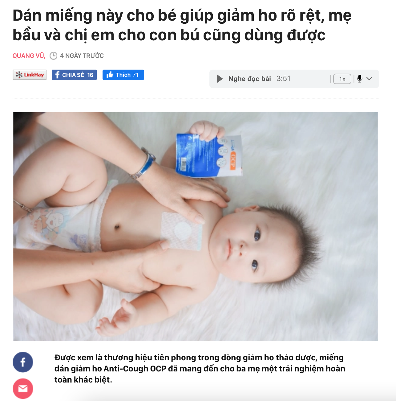 Nên dán 01 miếng giảm ho trước khi trẻ đi ngủ đêm, để trẻ ngủ ngon giấc, hỗ trợ tăng cường sức đề kháng, mau khỏi bệnh.